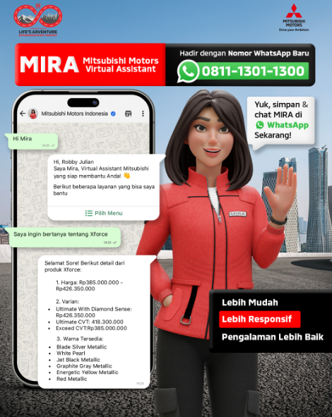 Asisten pribadi virtual berbasis chat yang dapat dipergunakan pelanggan setia Mitsubishi Motors guna mendapatkan informasi & layanan terbaik.